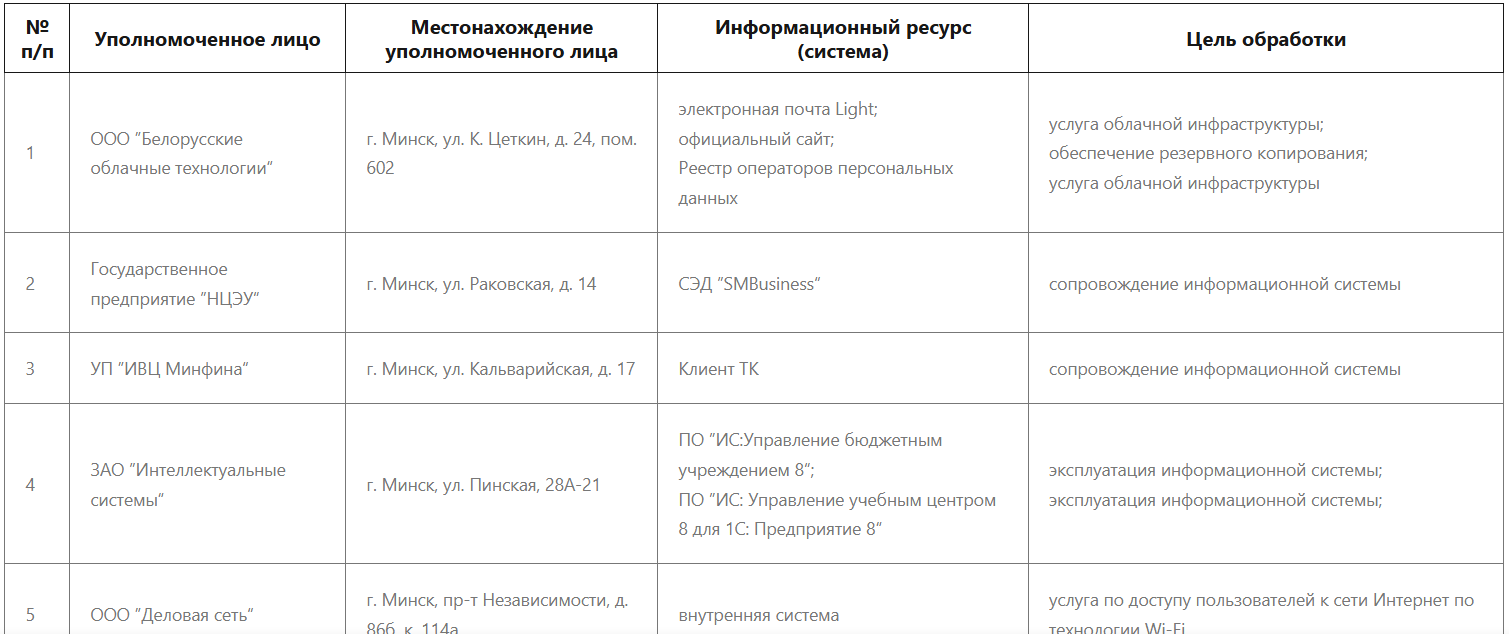 1.1. Издание Политики в отношении обработки файлов cookie (далее – Политика) является одной из обязательных принимаемых (наименование оператора) мер по обеспечению защиты персональных данных, предусмотренных статьей 17 Закона Республики Беларусь от 7 мая 2021 г. № 99‑З ”О защите персональных данных“ (далее – Закон). Настоящая Политика разъясняет пользователям информационного ресурса (наименование информационного ресурса) (далее – интернет-сайт), собственником (владельцем) которого является (наименование оператора), как, для каких целей и на каком правовом основании их персональные данные собираются, используются или иным образом обрабатываются.